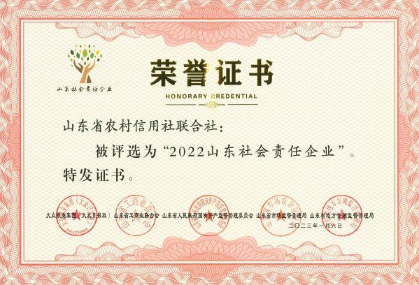 | 省联社荣获“2022山东社会责任企业” |